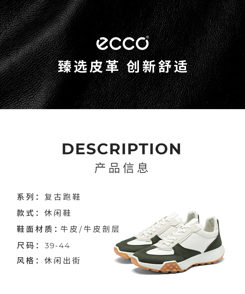 ECCO复古跑鞋系列男士休闲鞋