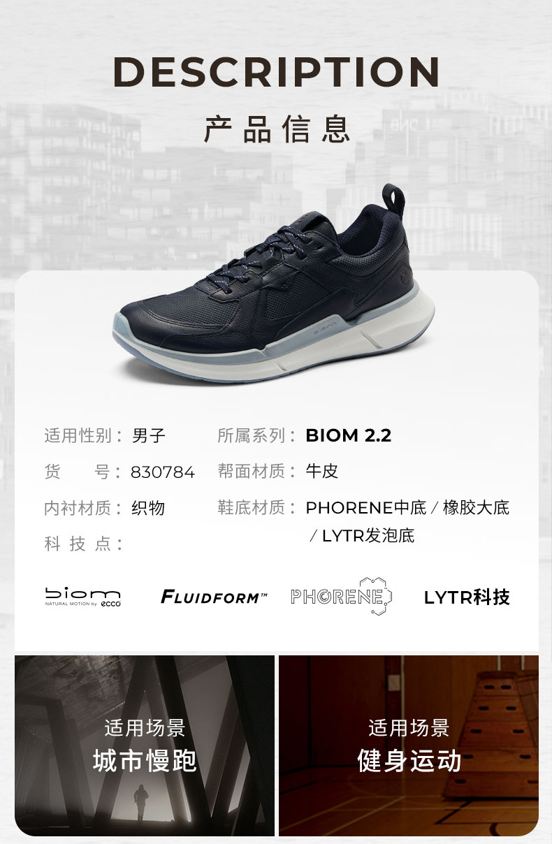 ECCO BIOM健步2.2系列男士运动户外鞋