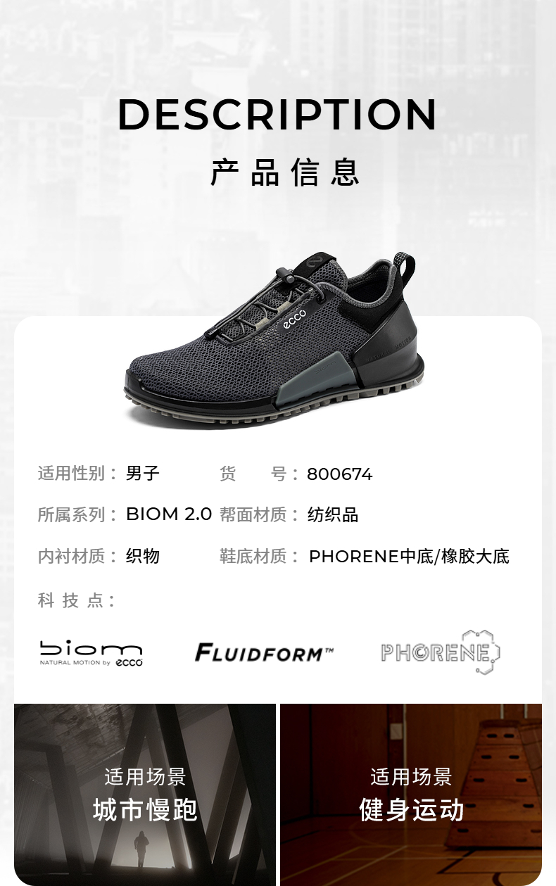 ECCO BIOM健步2.0系列男士运动户外鞋